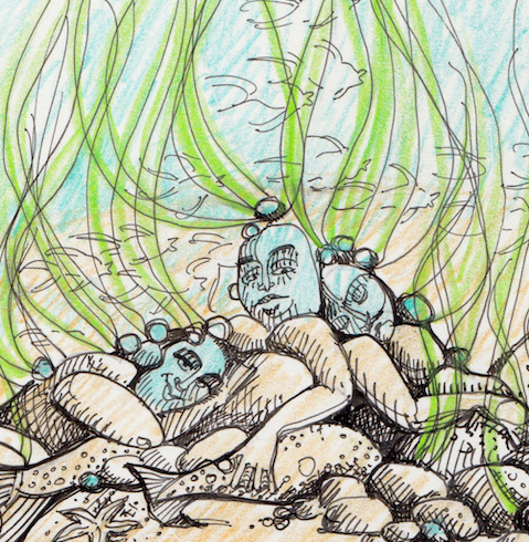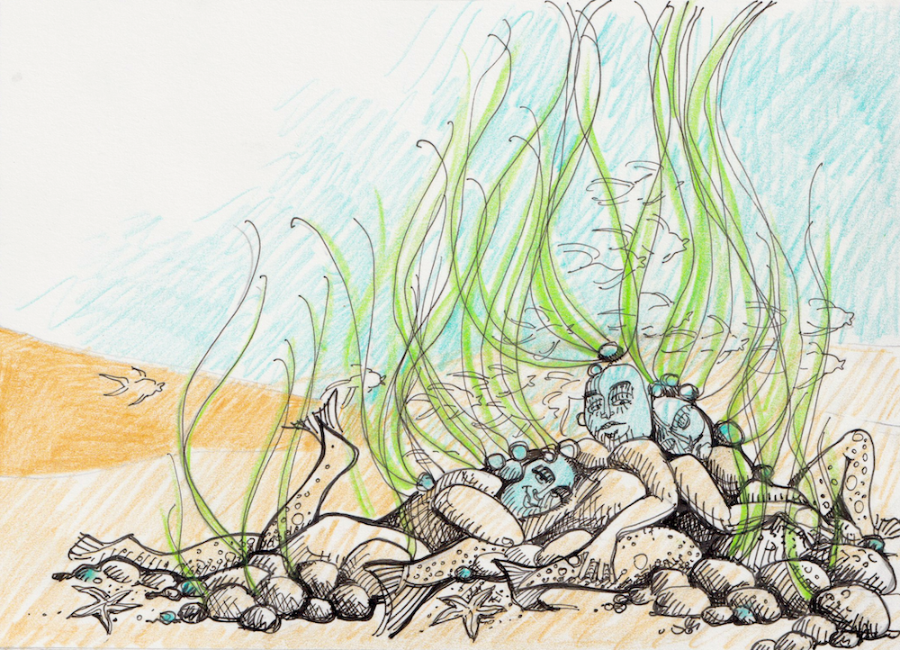 Drawing done as a study for characters under the sea done in pen and ink and colored pencils by Adriana "Gigi" Mederos.