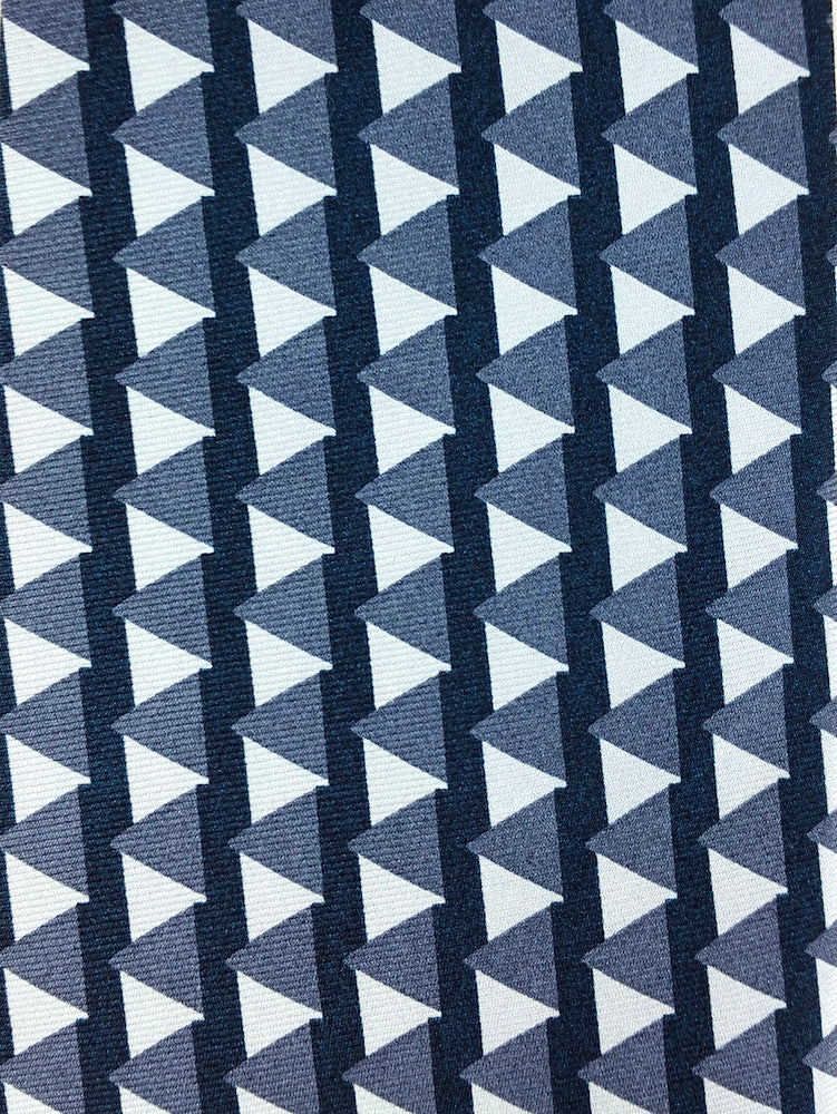 Regatta is the pattern and grew from our experience living on the water north of Boston. Salty blue green and seafoam triangles alternate on a deep water blue background.