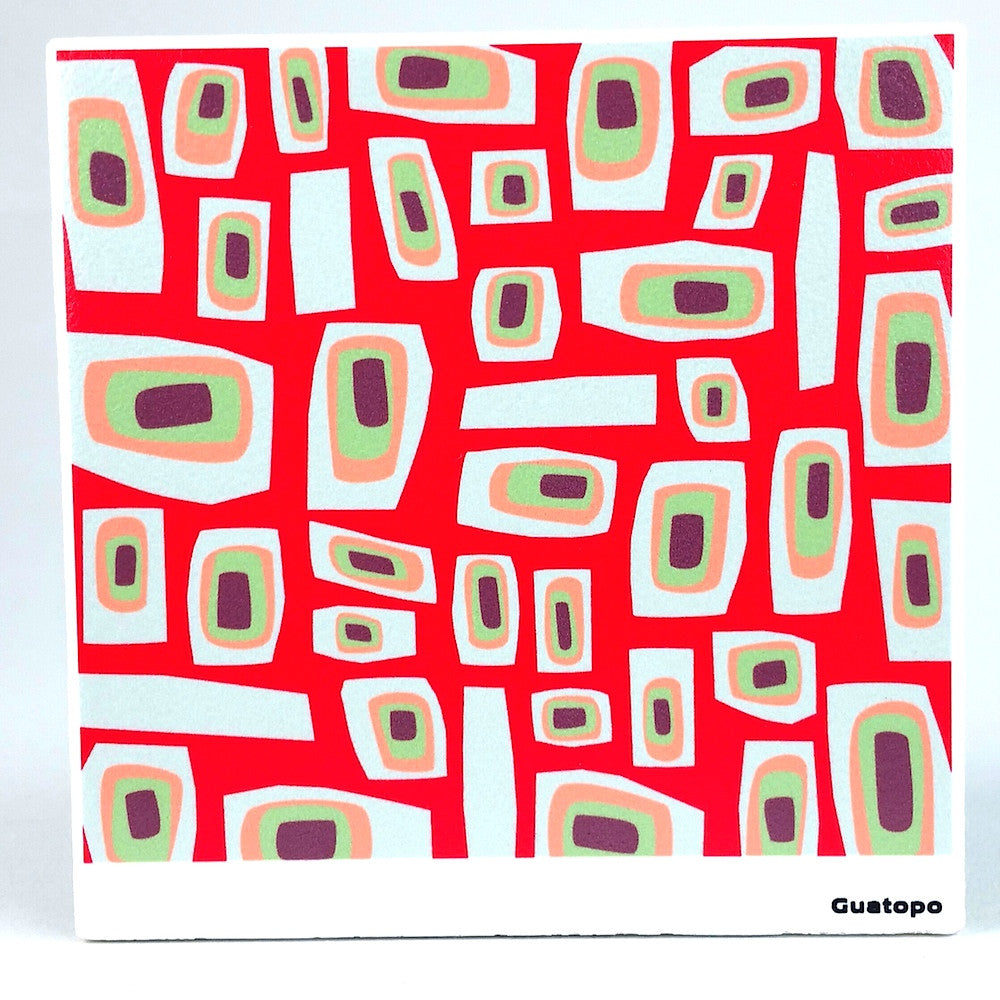Deep Dish Pie pattern – designed by Guatopo, these ceramic tiles can be hung as decorative tiles, but function best as trivets.
